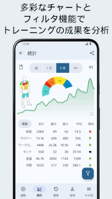 数百種類のエクササイズを網羅した編集可能なデータベースを基に、あなただけのカスタマイズされたトレーニングプランを自在に作成できます。スマートカレンダーでスケジュールを一元管理し、過去の記録から最適な重量や回数を自動提案。詳細な統計とチャートで、1RMやトレーニング量、消費カロリーなどを深く分析し、客観的に成長を把握可能です。精度の高い休憩タイマーとストップウォッチが、各セッションを効率的にサポートします。