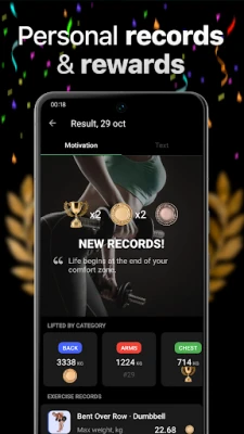 GymKeeperの高度な追跡機能と豊富なツールで、あなたの努力を可視化します。過去のパフォーマンスに基づきトレーニングデータを自動入力するスマート機能は、記録時間を大幅に短縮。カウントダウンタイマー、休憩タイマー、そして完全に設定可能なタバタインターバルタイマーがワークアウトを効率化します。詳細なチャートと統計でフィットネスの進捗と自己ベストを追い、バーベルプレート計算、1RM、BMI、目標心拍数ゾーン、日々のカロリー必要量など、専門的な計算機も内蔵。体の変化を写真で記録する機能や、モチベーションを維持する名言、達成バッジも充実しており、あなたのトレーニングを力強く後押しします。