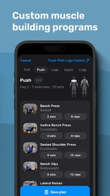 Alpha Progressionでは、あなたの身体的特徴、トレーニング頻度、ターゲットとする筋肉群に合わせて、唯一無二の筋力トレーニングプログラムを自動生成します。過去のパフォーマンスデータを詳細に分析する先進アルゴリズムが、次に取り組むべき重量やレップ数を的確に提案。これにより、漸進的過負荷の原則を最大限に活用し、停滞することなく着実に筋肉量を増やしていくことが可能です。さらに、690種類以上の豊富なエクササイズ動画ライブラリは、各動作のフォームを正確に習得し、安全かつ効果的なトレーニングを実現するための貴重なガイダンスを提供します。