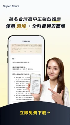 「超解 Super Solve」は、台湾の学生のために特別に開発された、次世代のAI学習アシスタントです。複雑な問題も、画像認識と最先端AIの力を結集し、一歩ずつ解き明かすプロセスと深い概念解説で、あなたの「なぜ?」を「なるほど!」に変えます。暗記に頼るだけの学習から、本質的な理解へと導き、より効率的で記憶に残る学びを体験していただけます。
