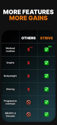 Arturは、Strive - gym workout logがあなたの「お気に入り」となるまで、進化し続けることを約束します。友人やフォロワーとワークアウトを共有し、共に高め合うことも可能。測定値、メモ、バックアップ、PR記録、多彩なセットタイプ(ウォームアップ、ドロップセット、マイオレップスなど)、ダークモード、充実したエクササイズデータベースといった基本機能も完備し、あなたのジムライフを全面的に支えます。さあ、Strive - gym workout logと共に、理想の自分を目指しましょう!