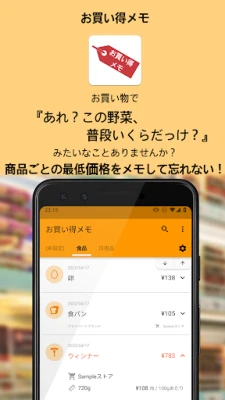 お買い得メモ〜最低価格を忘れない〜お買い物便利底値メモは、日々変動する商品の底値や最安価格を記録し、賢くお得なお買い物をサポートする無料アプリです。お店や数量・容量、税込み・税抜き価格もメモでき、単位あたりの価格比較も簡単。もう「今日の特売、本当に安い?」と悩むことはありません。便利なバックアップ機能も搭載。