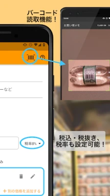 「お買い得メモ」を使えば、商品の「これは安い!」と感じた価格や、過去の最安値を詳細に記録できます。お店の名前、購入した量やサイズ(グラム、個数、ミリリットルなど)も併せてメモすることで、自動で算出される単位あたりの価格を比較し、真のコストパフォーマンスを簡単に見極められます。消費税8%と10%の切り替えもボタン一つでスムーズ。さらに、最新のバーコード読み取り機能も搭載し、商品の登録が一層スピーディーに。日々の買い物が、より計画的で効率的になります。
