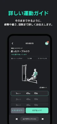 もう「今日は何をすればいいのか」と悩む時間は過去のもの。プランフィットの賢いAIコーチは、あなたの現在の環境(ジムの利用可能な器具や自宅での条件)を瞬時に把握し、セット数、レップ数、適切な重量まで細やかに指示します。エクササイズごとの正確なフォームを解説する動画も完備しており、狙った筋肉への意識を高め、怪我なく最大の効果を引き出すようガイド。運動記録が蓄積されるほど、プランフィットはあなたの成長に合わせてプランを微調整し、効率的なボディメイクへの近道を提案します。