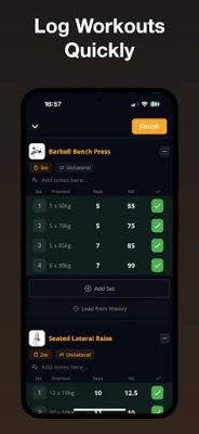 StrongerのAI駆動型プランナーは、減量から筋肥大まで、あなたの目標に合わせたパーソナライズされたルーチンを生成します。人気テンプレートの利用や、ウォーミングアップ、ドロップセット、スーパーセットの組み込みも簡単。数タップで種目、セット、レップ、重量を記録し、漸進的過負荷を容易に追跡できます。各エクササイズにはGIFデモと詳しい説明があり、常に完璧なフォームを保ちながら、詳細なログとグラフで進捗を視覚的に把握しましょう。