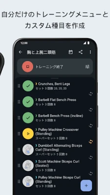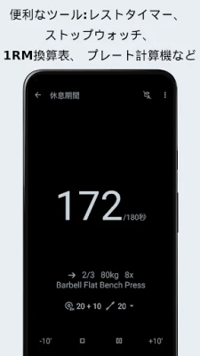 数百種類のエクササイズを網羅した編集可能なデータベースを基に、あなただけのカスタマイズされたトレーニングプランを自在に作成できます。スマートカレンダーでスケジュールを一元管理し、過去の記録から最適な重量や回数を自動提案。詳細な統計とチャートで、1RMやトレーニング量、消費カロリーなどを深く分析し、客観的に成長を把握可能です。精度の高い休憩タイマーとストップウォッチが、各セッションを効率的にサポートします。
