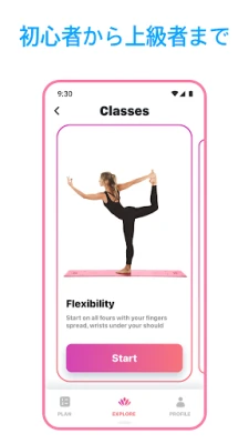 柔軟性向上、筋力強化、バランス感覚の育成といった特定の目標に焦点を当てた、VGFIT独自の9種類のヨガクラスで、体系的なスキルアップを図りましょう。各クラスは10分から30分の間で構成され、初級から中級レベルまで、あらゆる能力のユーザーに対応しています。自身の進捗を記録し、次のセッションを計画できる機能により、継続的な練習をサポートし、着実な成長を実感いただけます。